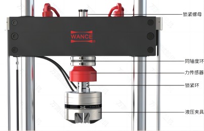 The relevant test standards require that the bending rate of the sample is less than 5%, if the machining accuracy and assembly accuracy are relied on alone, it is far from reaching the bending rate of less than 5%, because of the addition of a coaxial ring on the host, the hydraulic fixture can be accurately adjusted through this ring, and the bending rate can be easily reached.