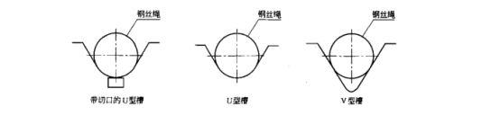 Ductile iron is generally selected as the material of the test wheel. The hardness of the test wheel is 220HBW~260HBW, and the hardness deviation of the inner surface of the wheel groove shall not be greater than 15HBW.If there are special requirements, other materials or hardness test wheels can also be used.There are three kinds of groove types of test wheel: U groove with notch, U groove and V groove, as shown in Figure 1.In general, a u-shaped groove test wheel with notches is used.The pitch diameter of the test wheel is 40 times of the nominal diameter of the wire rope. The size of other guide wheels should not be larger than that of the test wheel. The test wheel and other guide wheels should rotate flexibly.The dimension deviation of the test wheel shall conform to the provisions of GB/T12347, the dimension of the test wheel groove shall conform to the provisions of GB7588 and GB/T24478, and the groove Angle and notch Angle shall generally be 40° and 90°, respectively.