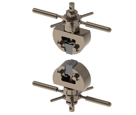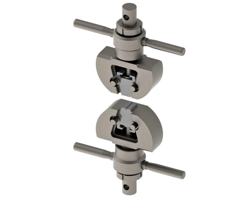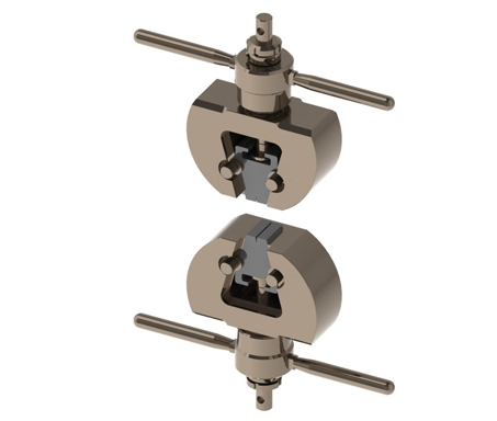 ApplicationTensile test of metallic and non-metallic materialsMaximum force20 kNConnectionΦ10 mm pinHeight A Upper grip123.5 mm`Lower grip123.5 mm`Grip body width B 108 mmTotal width C 140 mmWorking temperature···